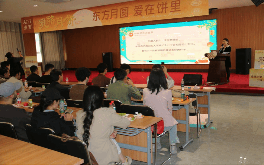 活动伊始,杨荣蓉老师以 “月与团圆” 切入文化讲解,从 “嫦娥奔月” 传说讲到古代祭月礼俗演变,介绍中秋节的重要文化地位。“月饼最初是祭月供品,如今成团圆象征,就像我们此刻跨越国界的相聚。” 通俗讲解让留学生频频点头。随后的诗词鉴赏环节,杨荣蓉老师带领品读 “但愿人长久,千里共婵娟” 等名句,解析其中思乡情与美好祝愿,哈萨克斯坦留学生如云特意用拼音标注诗句,感慨道:“中国诗歌把月亮写得很有感情,像家乡的星空一样动人。” 围绕中秋习俗、诗词设计的知识问答环节更引发热烈抢答,答对者获传统纹样书签,现场掌声不断。