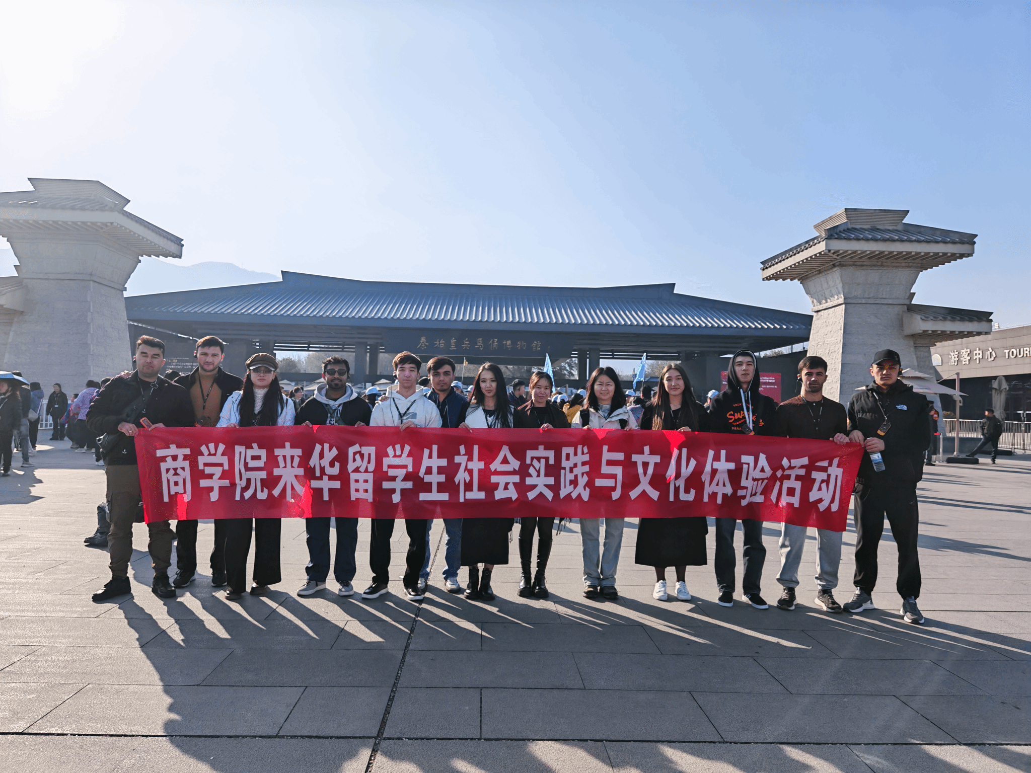 为深化来华留学生对中国历史文化的认知,搭建中外文明交流互鉴的桥梁,2025 年 11 月 20 日至 24 日,商学院组织来自哈萨克斯坦、孟加拉等国的 15 名来华留学生,在留学生管理办公室主任马媛老师的带队下,赴陕西省西安市开展了为期五天的文化研学活动。