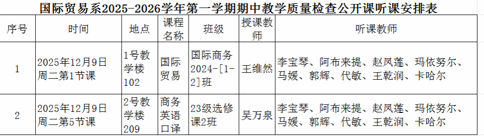 为深化教学质量建设、促进教师专业成长,新疆师范大学商学院国际贸易系于 12 月 9 日组织开展 2025-2026 学年第一学期期中教学质量检查公开课教研活动,系全体教师参与本次活动。