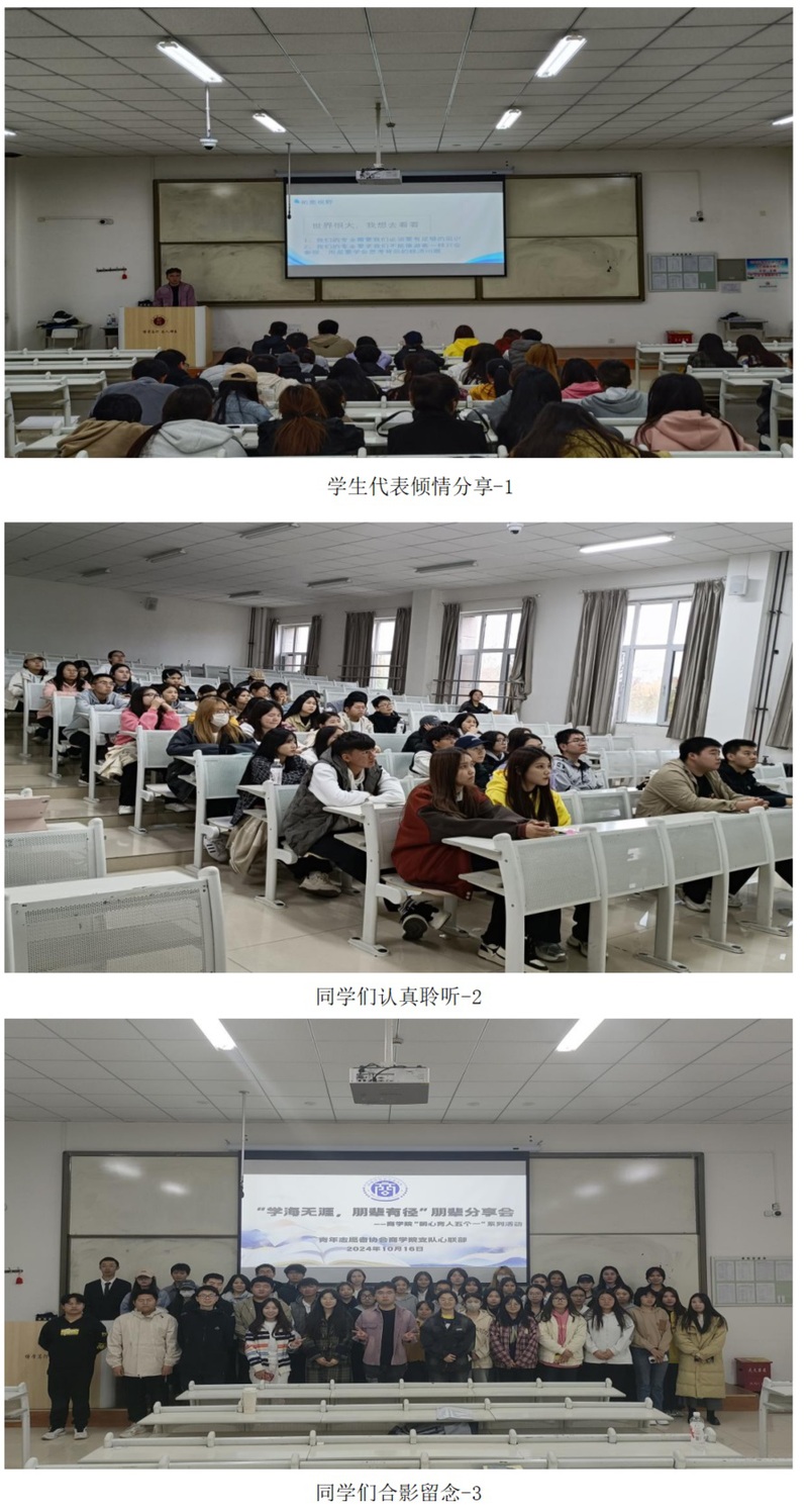 青春有约,朋辈同行。2024年10月16日,新疆师范大学青年志愿者协会商学院支队于齐学楼A区117教室举办了“学海无涯,朋辈有径”朋辈分享会。此次分享会邀请了来自商学院经济学、国际经济与贸易专业的22级优秀学生代表,学院辅导员林雪琪老师参与此次交流活动。